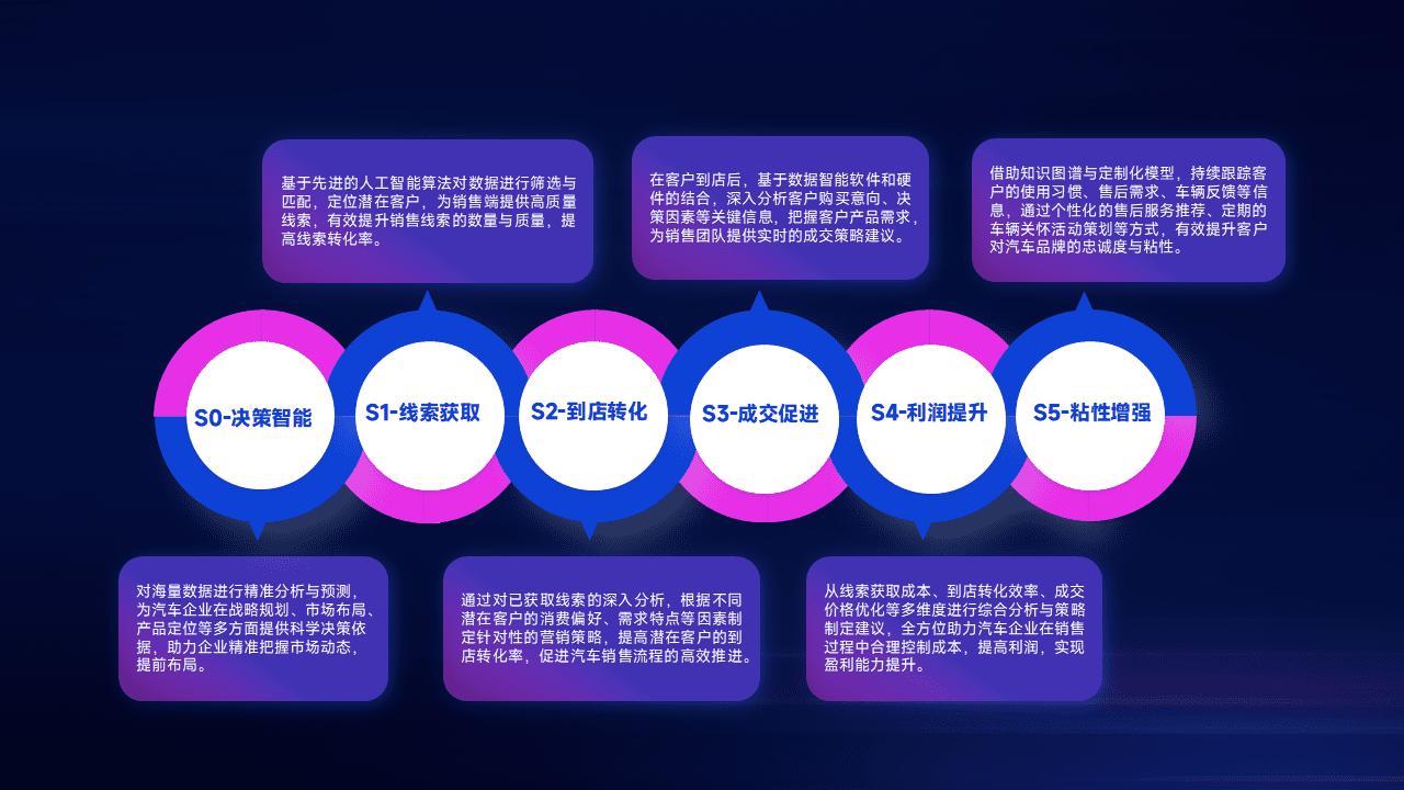 通过拓宽潜在客户来源、、、优化线索分配并提高到店转化率,,以增强销售效率。。。同时,,利用线索数据不断优化分析模型,,有效提升转化率,,,,扩大营销影响力。。